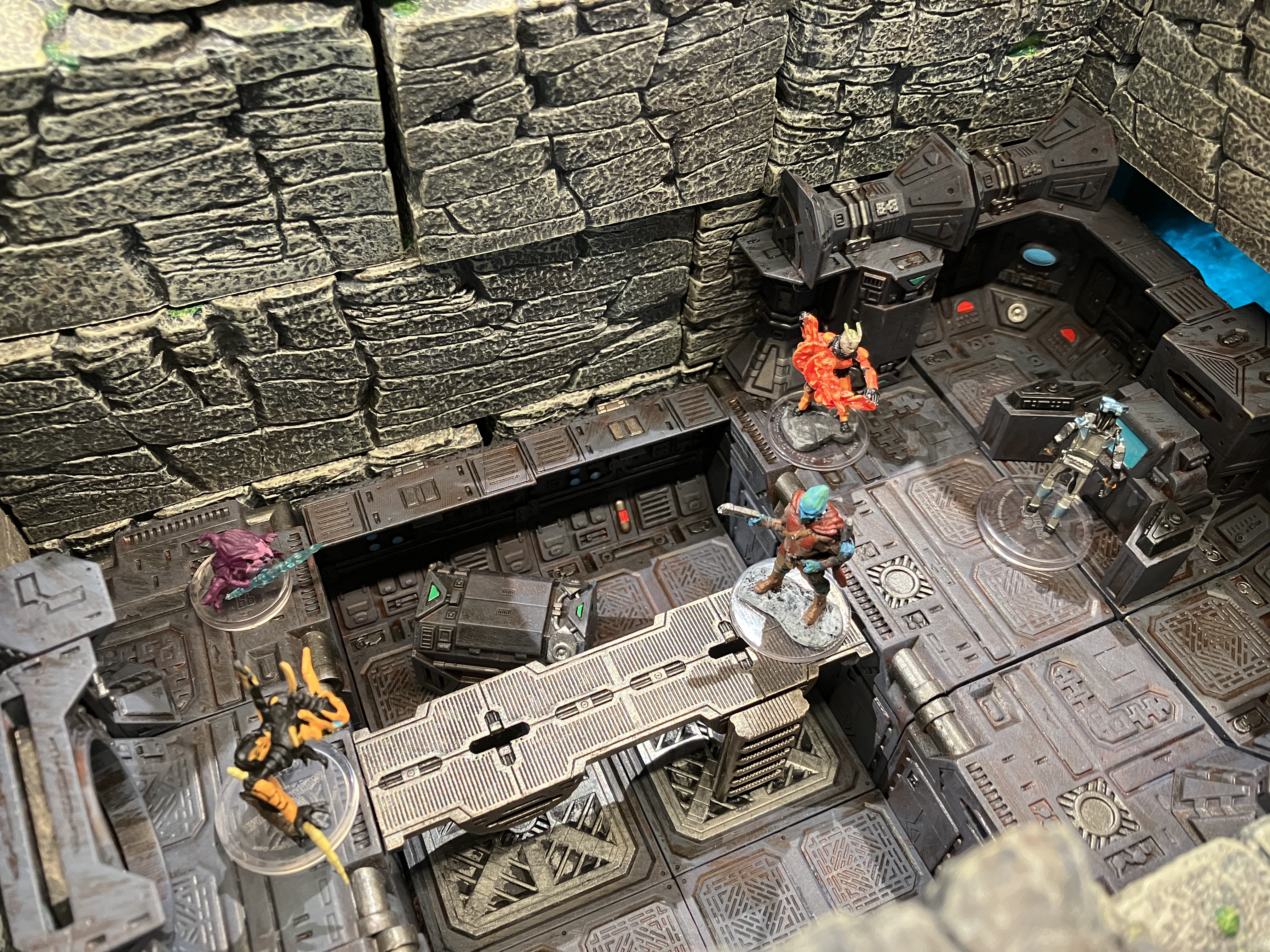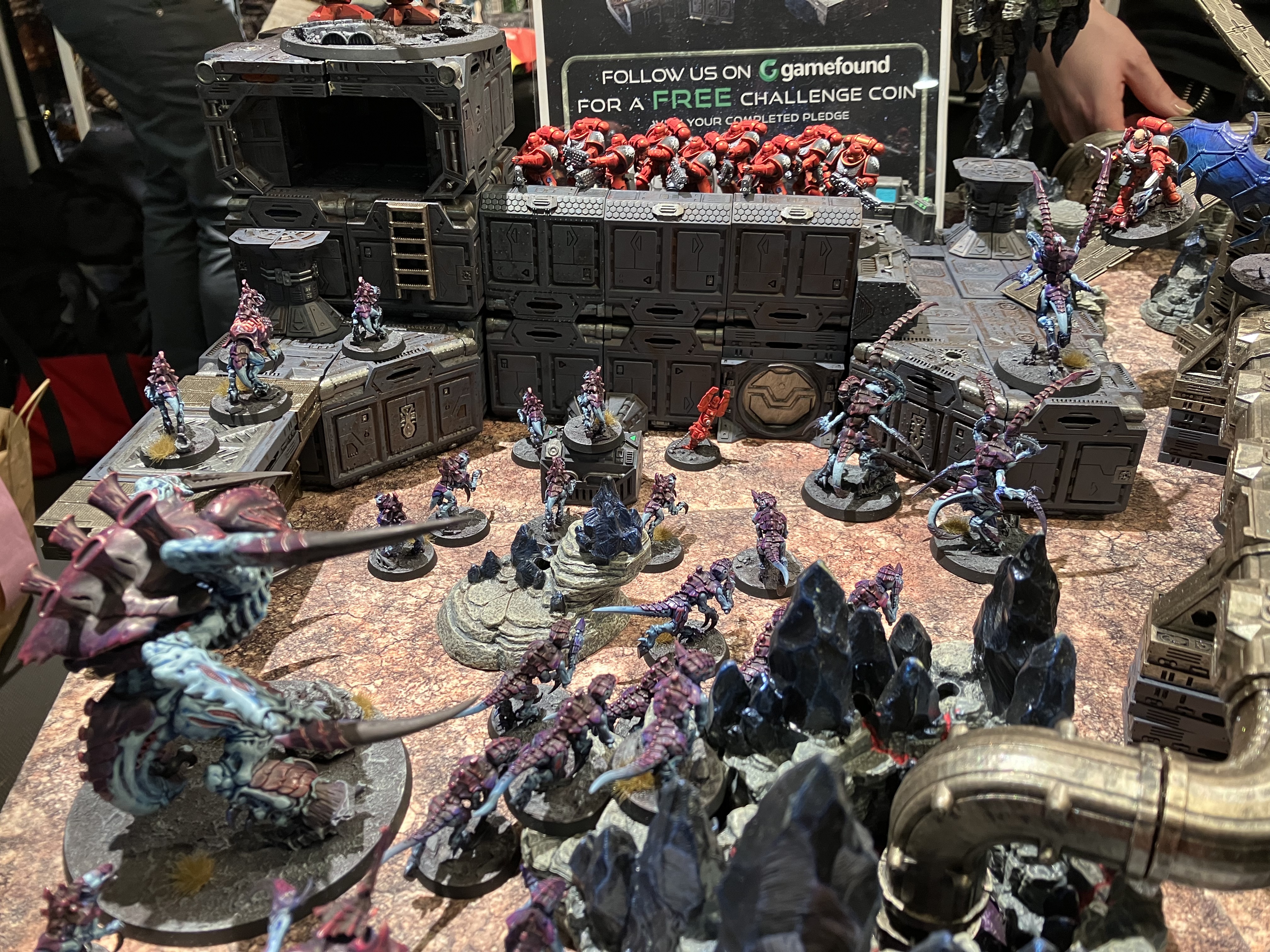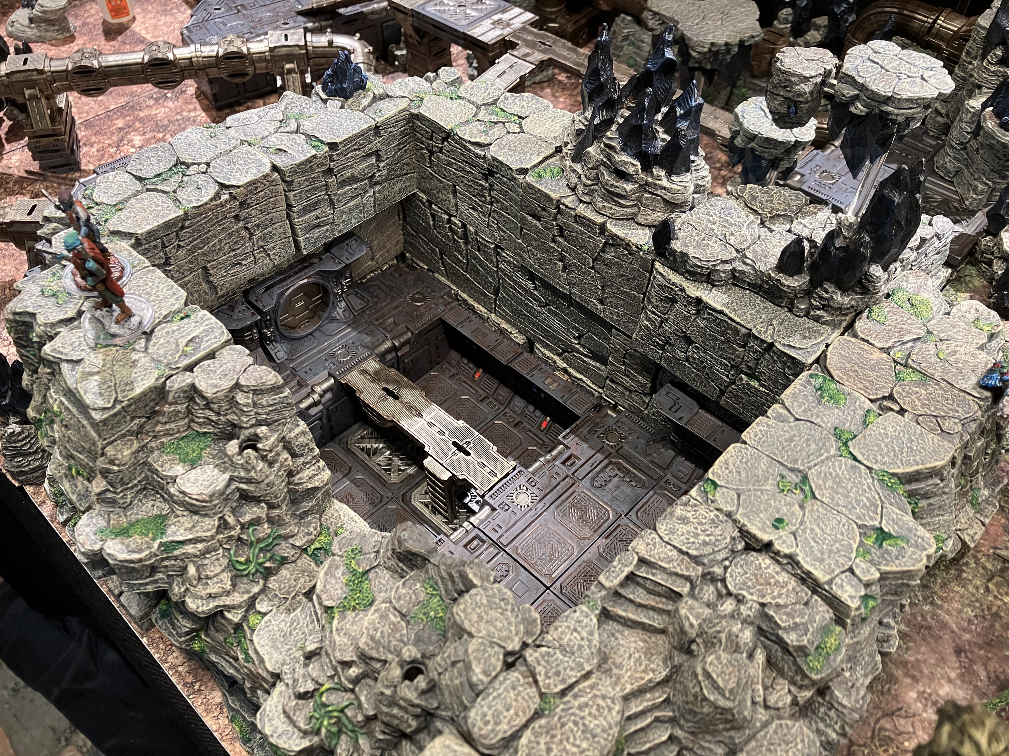 I can take a little time during the day to do some browsing and shopping too. The highlight of this show for me was (predictably) the Dwarven Forge booth, where they had the upcoming Starforged sci-if terrain prototypes on display. The new pieces look great, especially juxtaposed with their Wildlands terrain, and they recontextualized the square cutouts on the back sides of the big Wildlands pieces for a really cool effect.