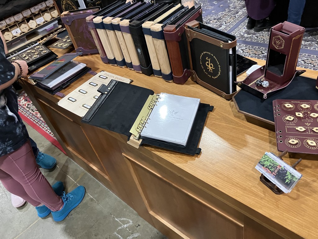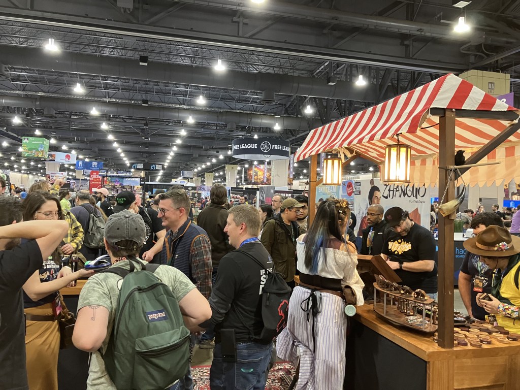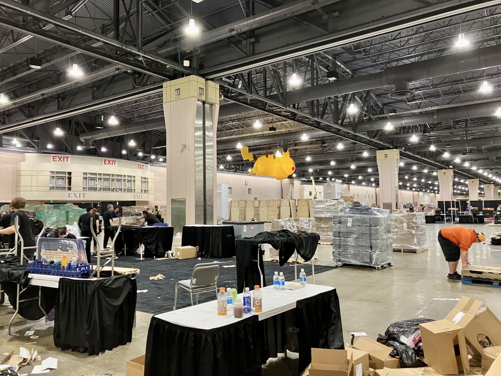 Skip ahead a few years, and I moved into the convention management position at Elderwood just in time for GenCon 2022. Convention management entails all of the pre-show work like assessing inventory and restocking product, ordering electrical service, making freight and drayage arrangements, finding accommodations, and organizing staffing and transportation. I typically arrive at a convention two days early with another staff member We spend the first day setting up our structures and the second day decorating and putting out product. This stretches the typical four day convention into six days, or in the case of PAX Unplugged, a three day con becomes five days.