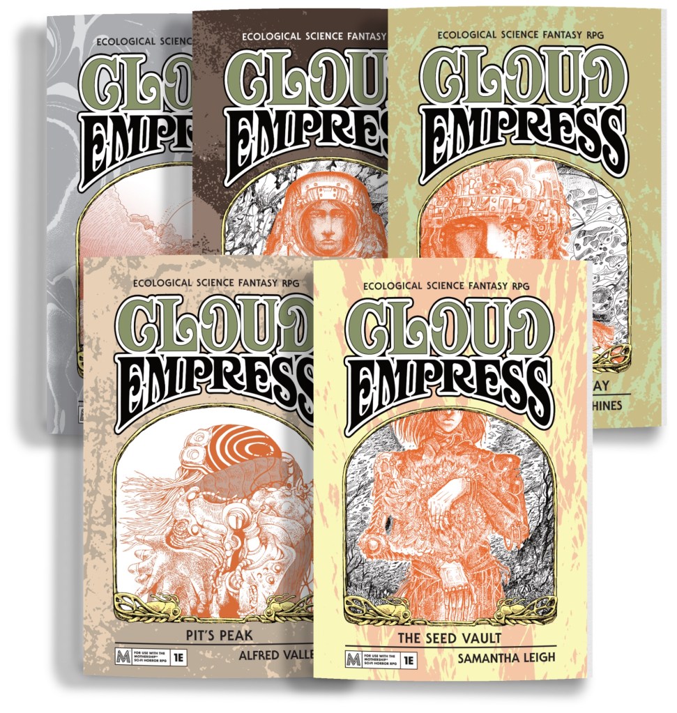 If you’ve read this far, you should really read this conversation between Sean McCoy (Mothership/Tuesday Knight Games) and Watt (Cloud Empress). The decision to give Cloud Empress the Mothership branding rather than use their open license Panic System branding wasn’t merely one of commercial interest. Cloud Empress is meant to be an alternate setting for Mothership, and I find that illuminating. I love the idea of having your Mothership characters crash-land on the hex map, or go there on a chalk gathering mission. You could get really weird with that crossover, and it would give the gameplay more purpose than the books themselves provide. That said, the solo gameplay rules were created as a late stretch goal, but they provide a focus and purpose to play that the other books generally do not.