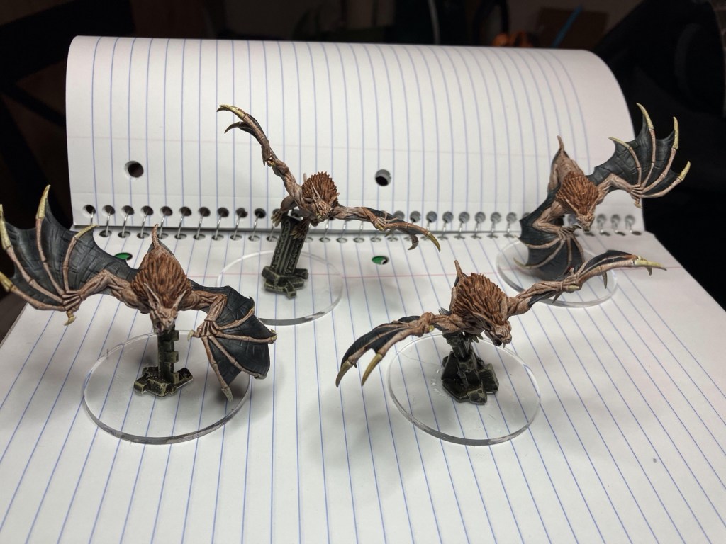 And Bats: There’s a level of the Scarlet Citadel that’s full of bats, but you might not believe how hard it is to find bat minis. They’re bats! Everyone needs bats! Where are they?? I got some cheap swarms off eBay but I still needed some big fellas. Artisan Guild to the rescue, yet again. I think I had to scale these down to 66% as they were made to have riders, but they still printed perfectly. They came out really well, if I may say so. That’s the thing with painting minis, sometimes I finish something and can’t believe I painted it, and other times I make garbage. I should paint more frequently to try and improve my consistency.