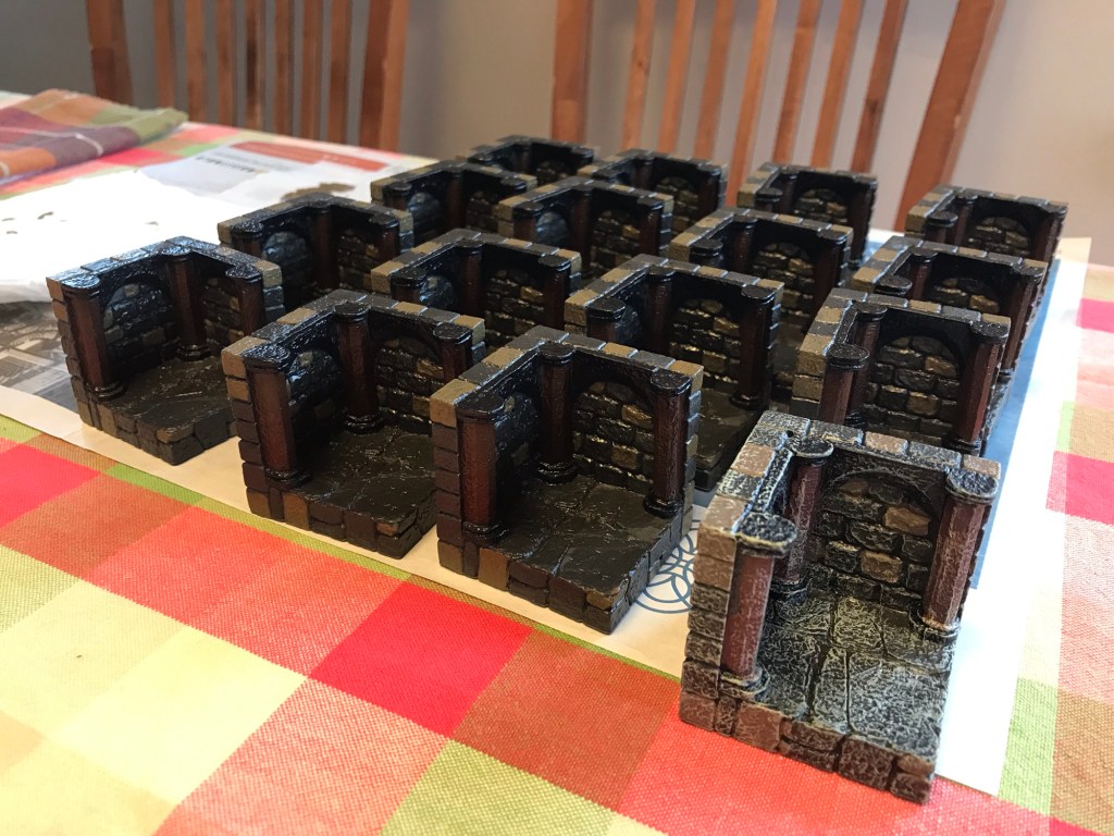 I did get some work done on these corner pieces, though. Only the dry brush remains and then I will have doubled my available vaulted corners. Corners are the most important part of a room, after all. I’ve taken to just throwing down corners and doors to bound rooms when I don’t have time to do a full build. It’s a good quick and dirty solution.