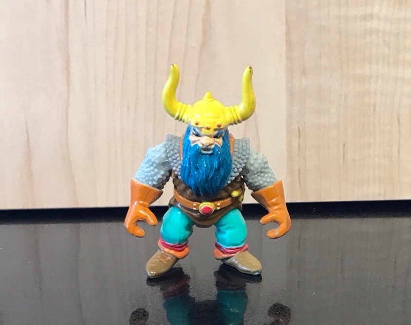 Also worth noting, these guys left actual sand on our countertop, so they presumably saw action in my friend Daniel’s sandbox. His older brothers were the first people I knew who played D&D. They had the Moldvay books punched and in a binder, and I inherited their original Deities and Demigods at some point (and sold it in college, to my great regret). Daniel had the Fortress of Fangs play set. He also had the GI Joe aircraft carrier and the Transformer that turned from a rocket into a working train set. We would play all day in his basement with trashy Saturday afternoon movies on in the background. Great times.