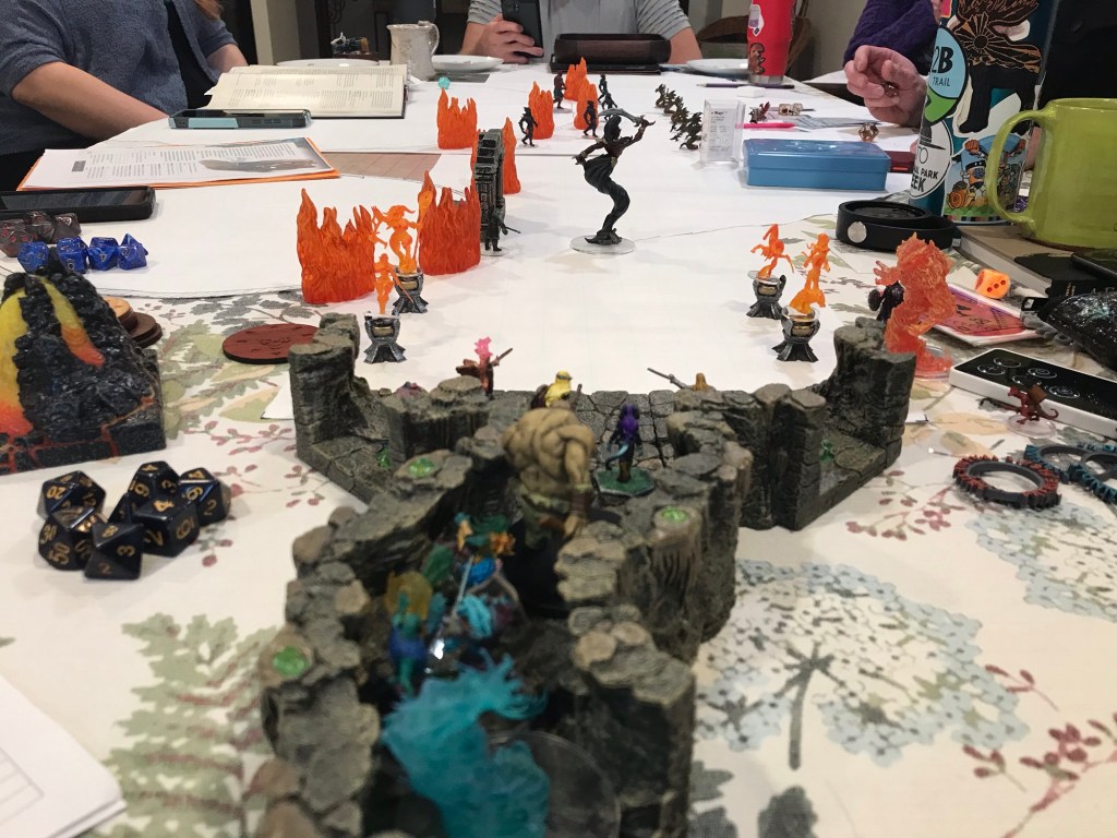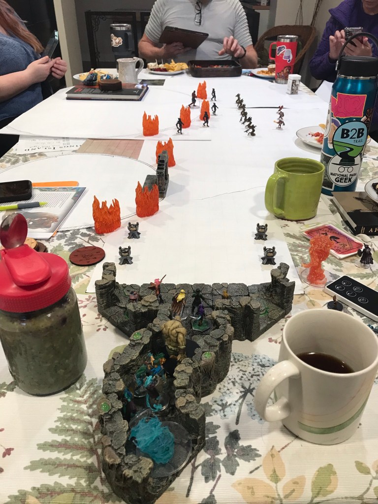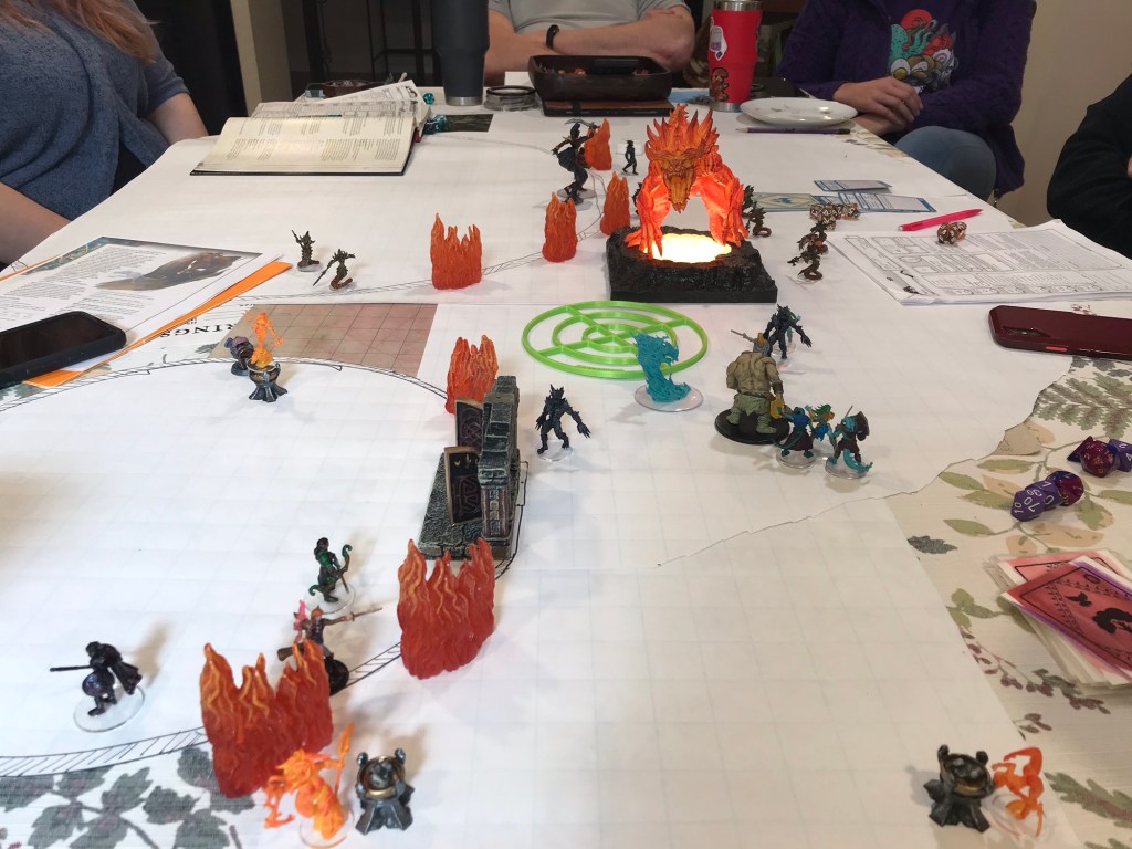 The combusterinos started singing “Our God is an Awesome God” as Molotek crushed Svarku and started laying waste to anyone who wasn’t a fire elemental. He superheated and detonated an obsidian bladeguard with his Combustion legendary action, and the players realized he was well out of their league. They were certainly thankful for the potions of fire resistance they had quaffed before the fight as Molotek’s Heat Waves rolled through the area. I rolled a 1 and a 2 when Molotek targeted the paladin with his flame blast, and even with +12 to hit, he couldn’t touch him with those rolls. The group gathered together and Meltalia used a wish to teleport them all to safety. Phew!