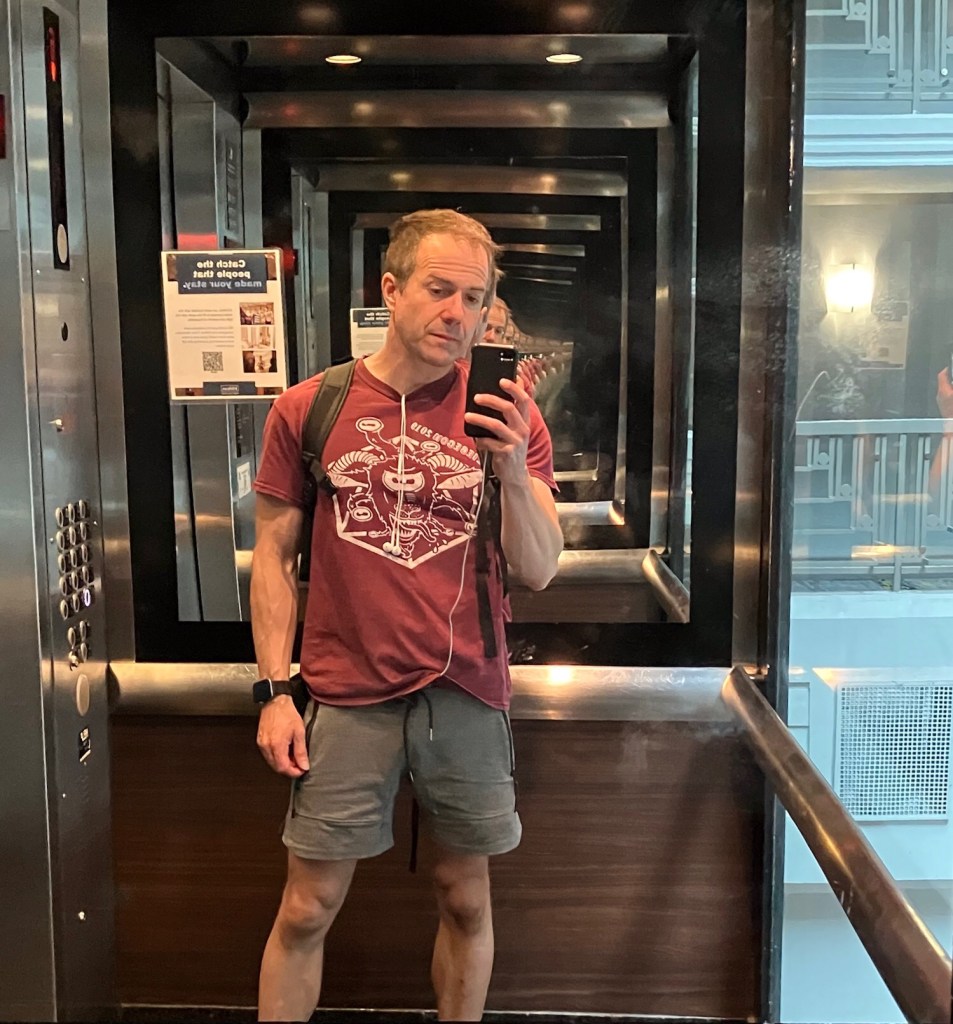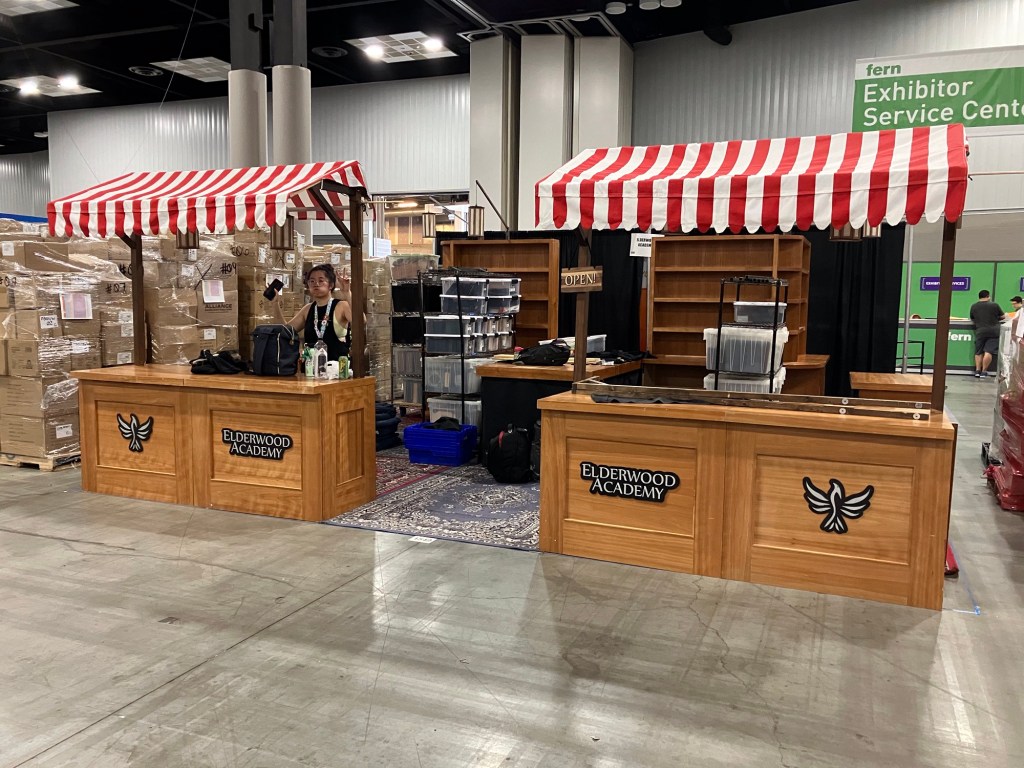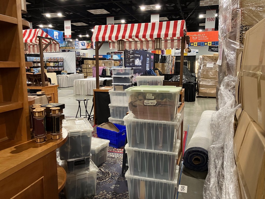 It was a sweaty set up day, as the Indiana Convention Center doesn’t turn the AC properly on in the vendor hall until the convention starts. We rolled in with a lot of product to deliver to collaboration partners and some new products of our own. After unloading the truck and hauling everything in, we got our booth structures up and broke to check in at the hotel. We had a confusing exchange there, as we unexpectedly received a pile of drink tickets for their nightly reception. I’m used to sleeping on couches in strange AirBNBs, so this was quite a change. We only had hotel rooms because I checked the email on a whim after seeing someone mention that vendors got first crack before attendees and by show tenure. We’ve been going to GenCon for quite a few years, so we had a good draw for locations, and we ended up saving quite a bit of money over the AirBNBs we had used previously. The ICC sits in a dead zone for AirBNBs anyway, as it’s surrounded by hotels and government buildings. I didn’t miss the half-hour long hike after work in the grimy Indiana heat and humidity, even if half the hotel’s elevators were inoperative. I’m perfectly happy to take the stairs.