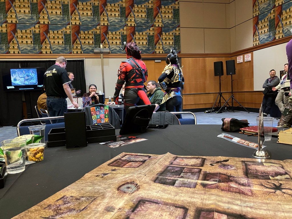 Right off the bat… My first track didn’t fire because there weren’t enough players. So that’s who pays top dollar to play a bunch of D&D at MagicCon: not enough people. Alas. I helped out at HQ cutting up physical certs for the new campaign and did whatever else I could, including running some D&D Learn to Plays. Those were wildly, unexpectedly fun. A group would sit down and I would run them through a fifteen minute scenario, touching on the rules as we went. If you ever need to have your love for roleplaying games rekindled, run them for people who have never played before. The sheer delight and creativity and chaos was a genuine joy to behold.
