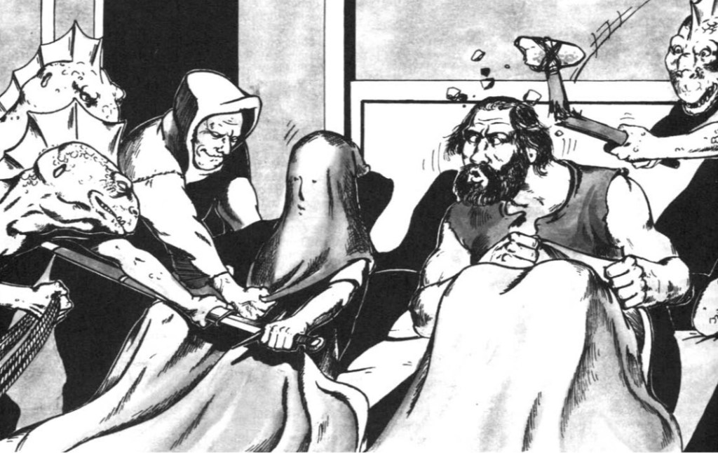 An Aside on the 5e Conversion. I generally pulled stat blocks of the same name and kept an eye out for when the numbers of enemies would be overwhelming. I figured most of the cultists, being brainwashed townsfolk, were best represented as commoners. This meant they tended to drop in one hit and we could move things along. The exceptions were cultists who had AD&D character levels. I originally intended to use the leveled sidekicks from Dragon of Icespire Peak, but the cleric sidekick is definitely a healer, so I used the 2024 cultist fanatic as needed. Assassins are serious business at CR8, so in that case I used the level 4 Expert sidekick.